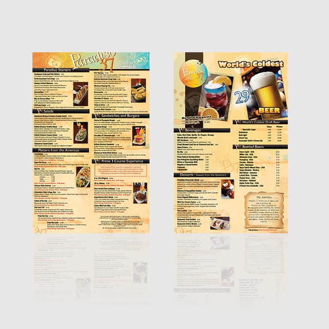 PixelChefs worked closely with Paradiso 37 ownership to redesign their menu to showcase their unique character and help increase sales for select menu items. Our design team applied our advanced knowledge of design theory, sales tactics, and how customers interact with restaurant menus to help Paradiso 37 increase drink sales and drive interest to high profit menu items.